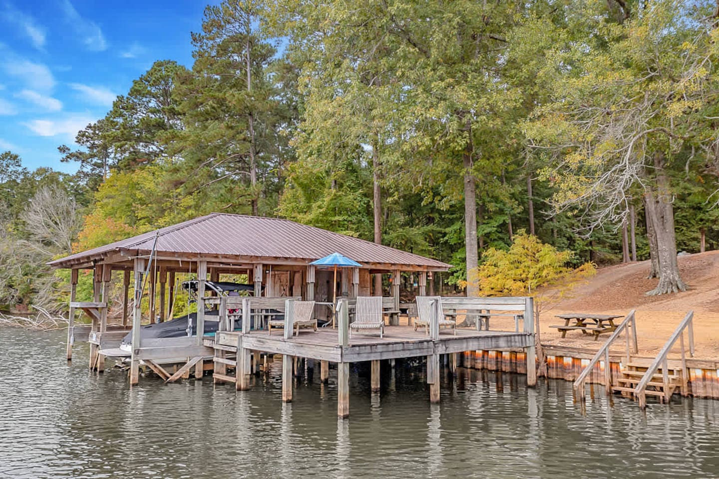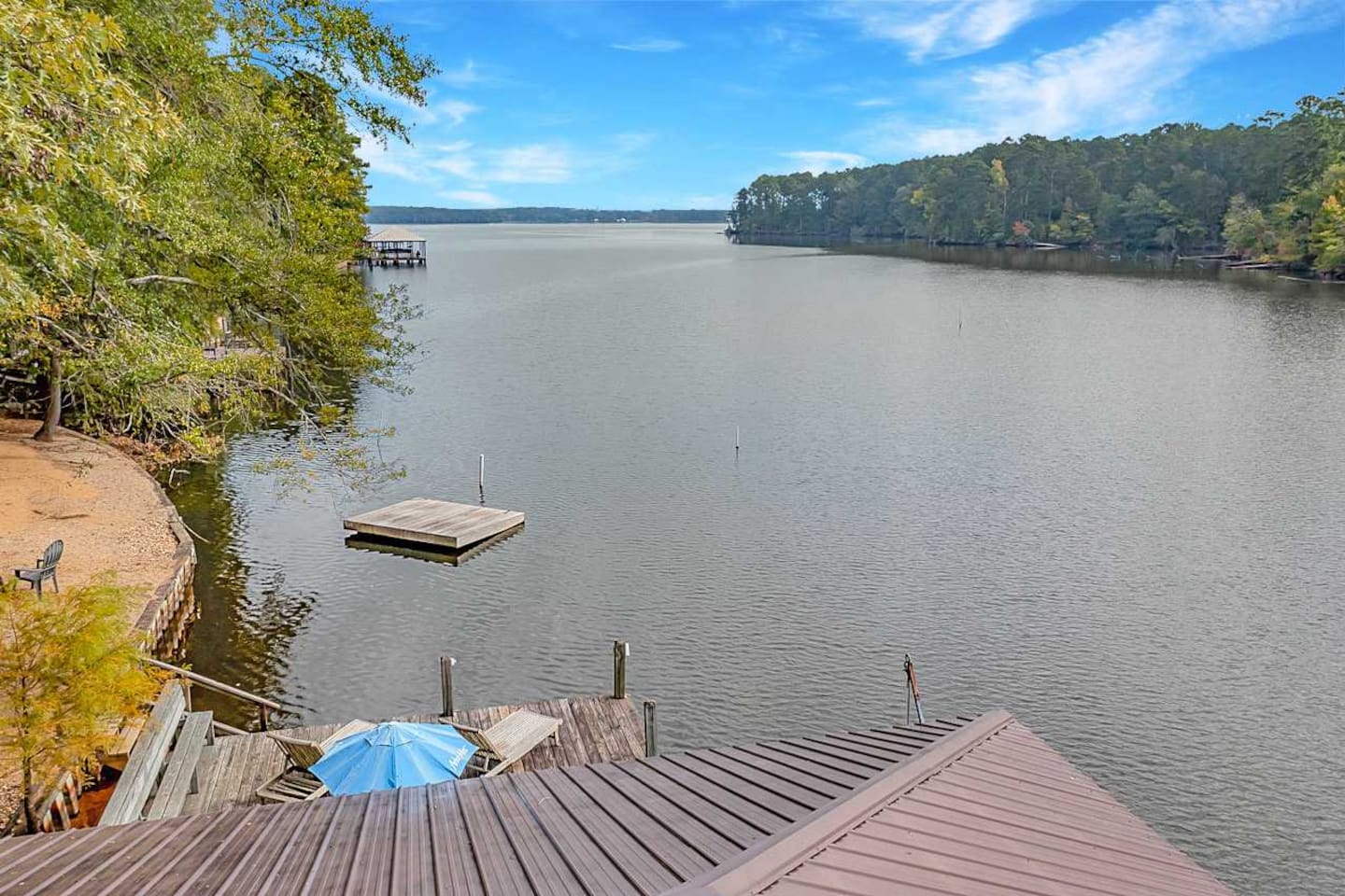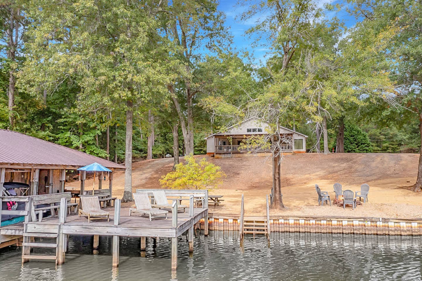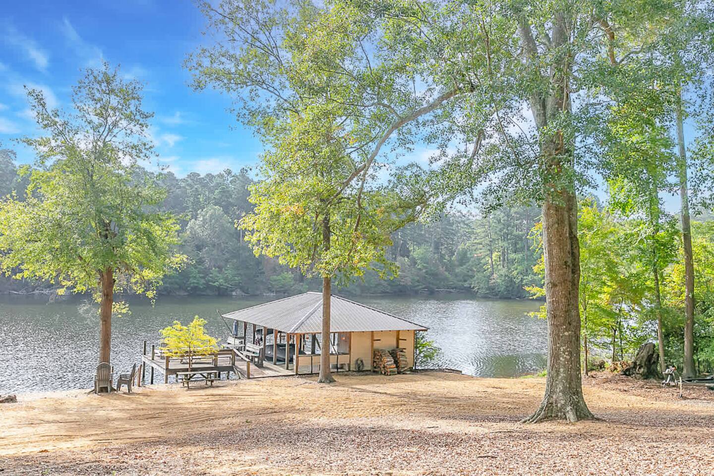 This spacious 4-bedroom lakefront home on beautiful Lake Claiborne is designed with comfort and convenience in mind—perfect for large families, reunions, or group getaways. With sleeping accommodations for up to 20 guests and king beds throughout, everyone will enjoy plenty of room to relax and unwind. Inside, you’ll find a fully equipped kitchen featuring double refrigerators—ideal for storing meals and drinks for large groups—and a double washer and dryer setup to make extended stays easy. The open layout provides ample space to spread out for family meals or gatherings, and the back patio offers a peaceful spot to enjoy your morning coffee or an evening meal while taking in the lake views. Stay connected and entertained with high-speed internet and satellite TV, or step outside to experience the natural beauty of this secluded cove. Whether you’re relaxing on the porch, fishing from the dock, or watching the sunset over the water, this home combines modern comfort with lakeside tranquility for an unforgettable stay.