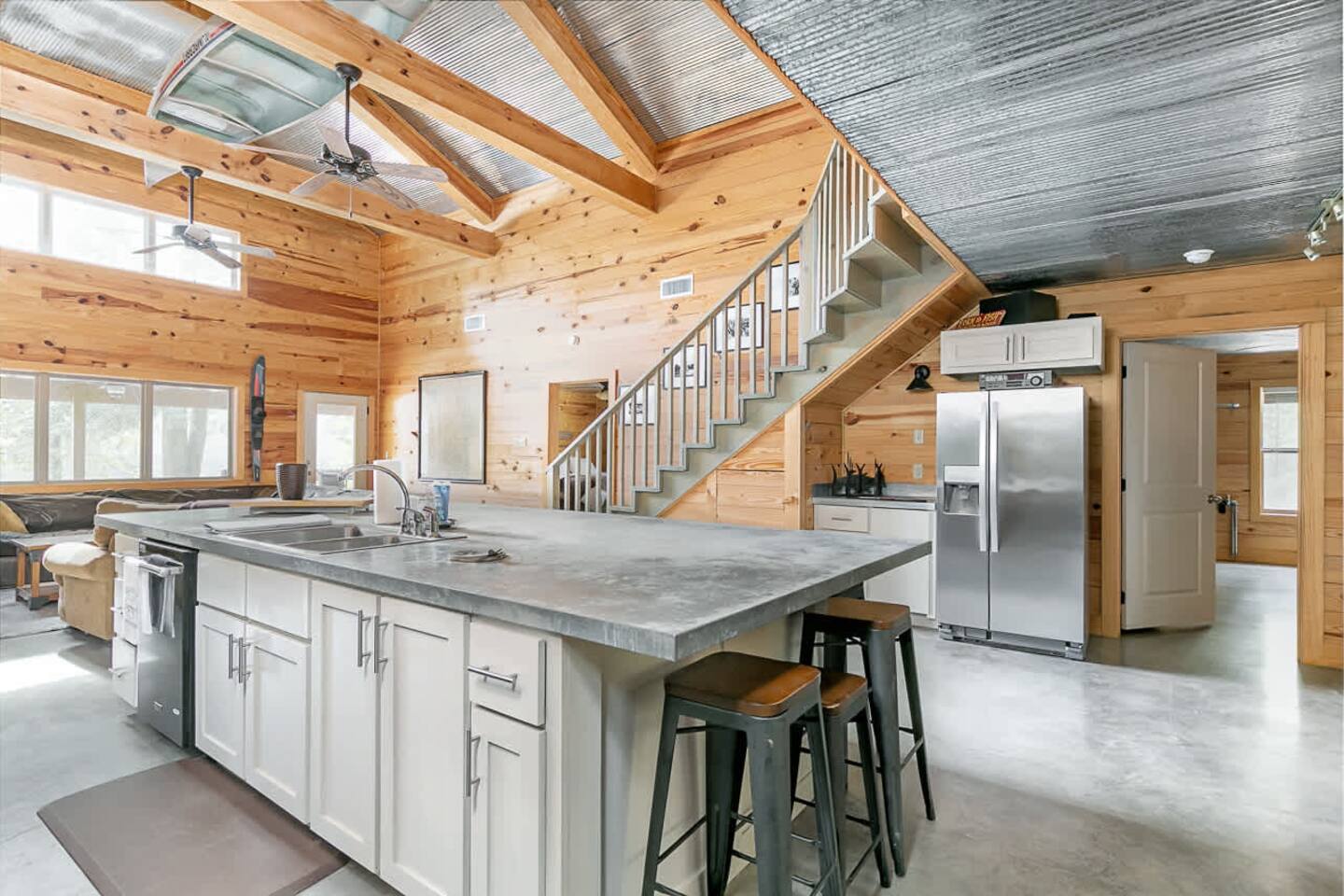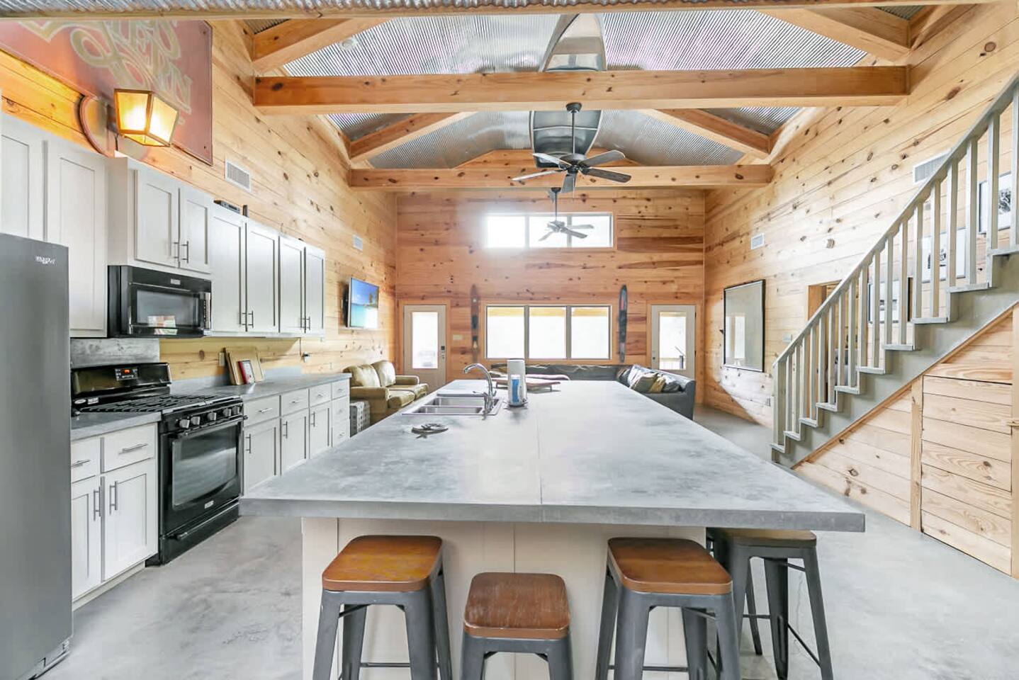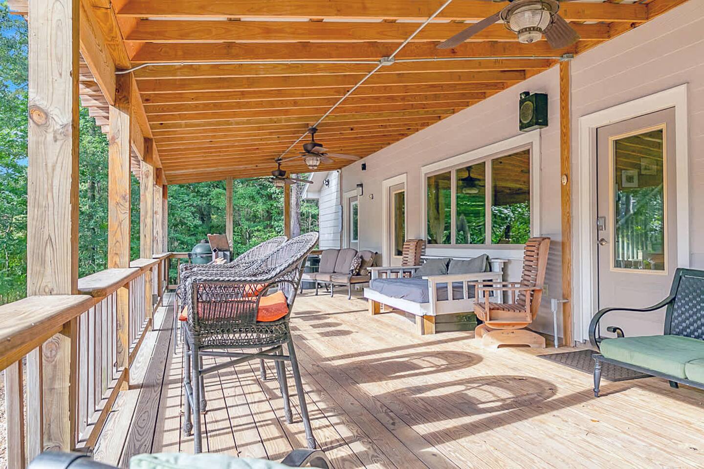 Perfect for family gatherings, retreats, or large groups, this beautiful 4-bedroom getaway comfortably sleeps up to 20 guests. The home is designed for convenience, featuring double washers and dryers and two full-size refrigerators—ideal for extended stays or feeding a crowd. Enjoy outdoor living at its best with an extra-large covered porch, plenty of seating on the dock overlooking the water, and a fire pit that’s perfect for evening hangouts under the stars. Whether you’re relaxing by the la