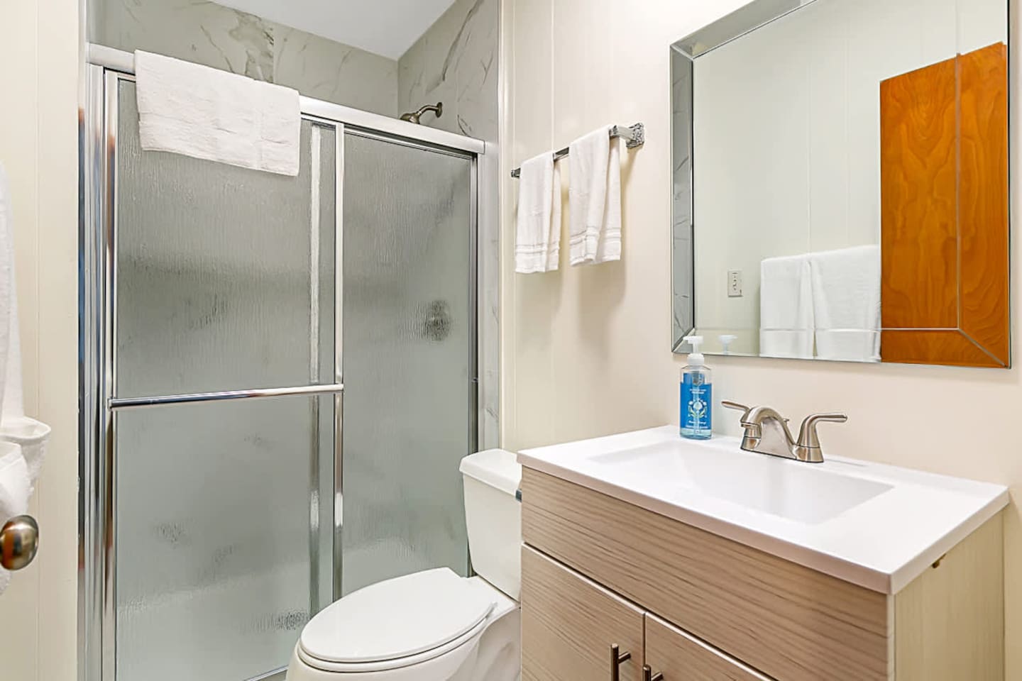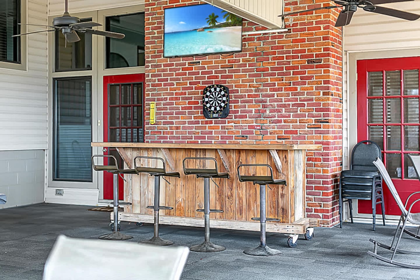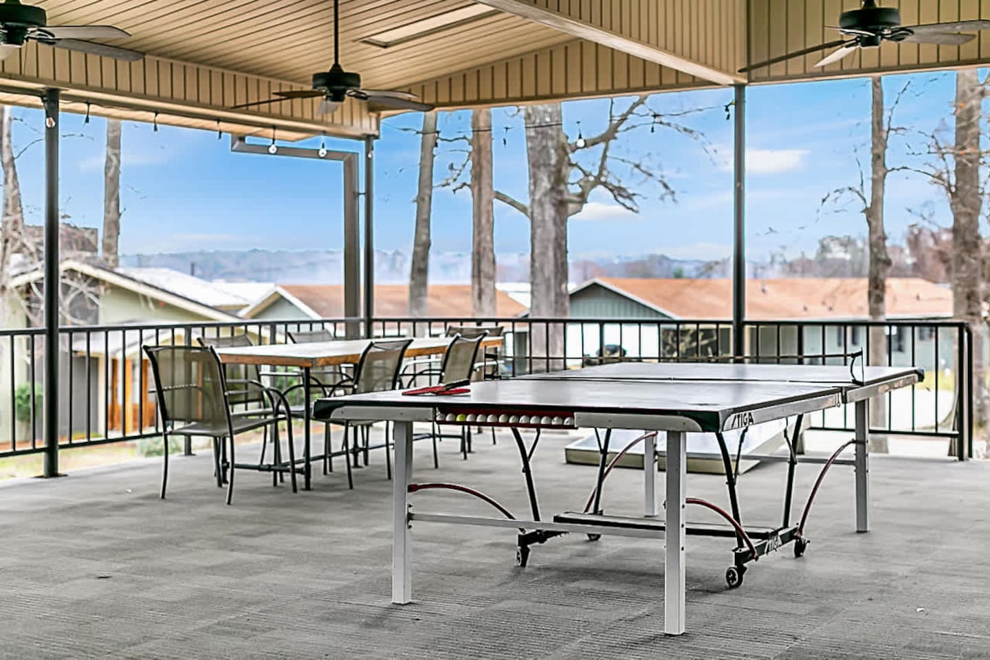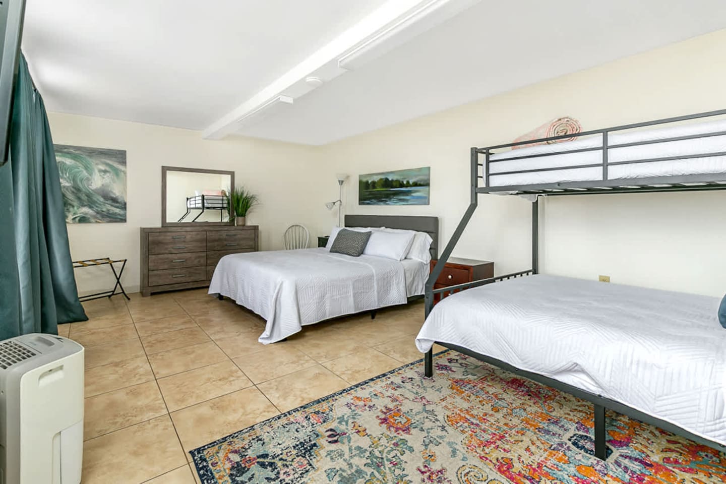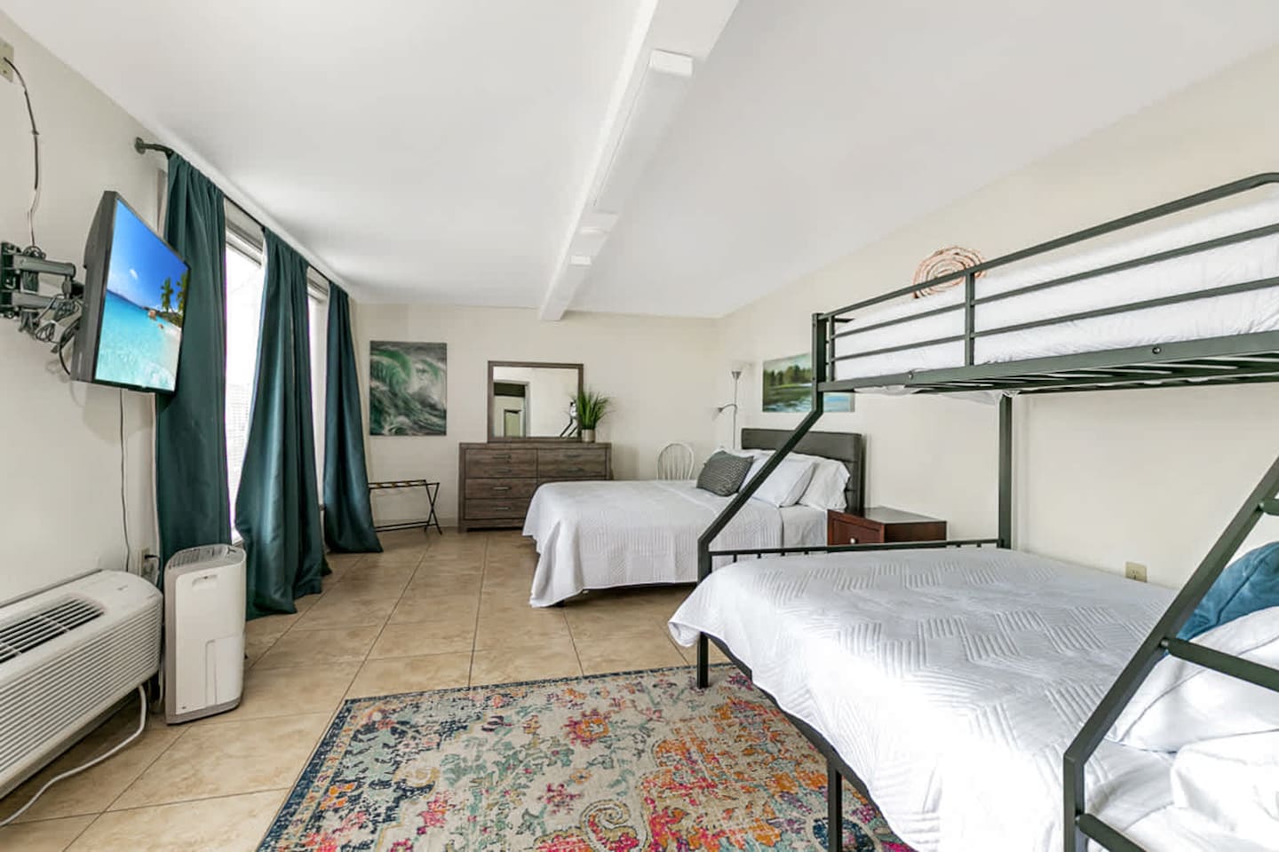 The space offers 5 full bedrooms and 5 full bathrooms. The downstairs unit has a King and a Twin over Queen Bunk that is a great spot for a small family. The downstairs bunkroom offers 2 bunk beds with multiple tv's and video games. The 3 upstairs bedrooms offer a direct on suite bathroom.