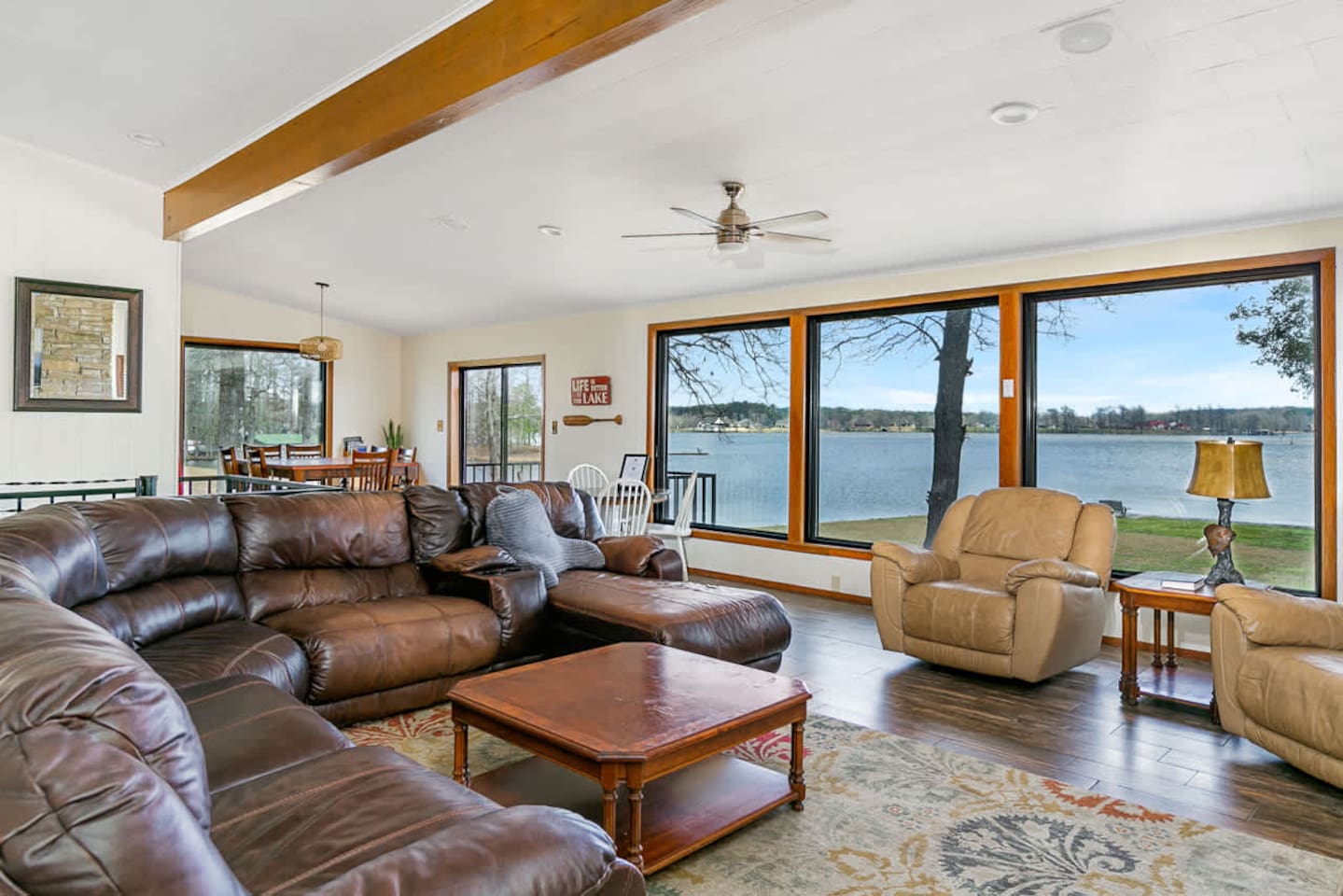 Quiet lakefront neighborhood. We also offer a 3/3 that sleeps 10 next door so you can sleep 25 between the two properties!