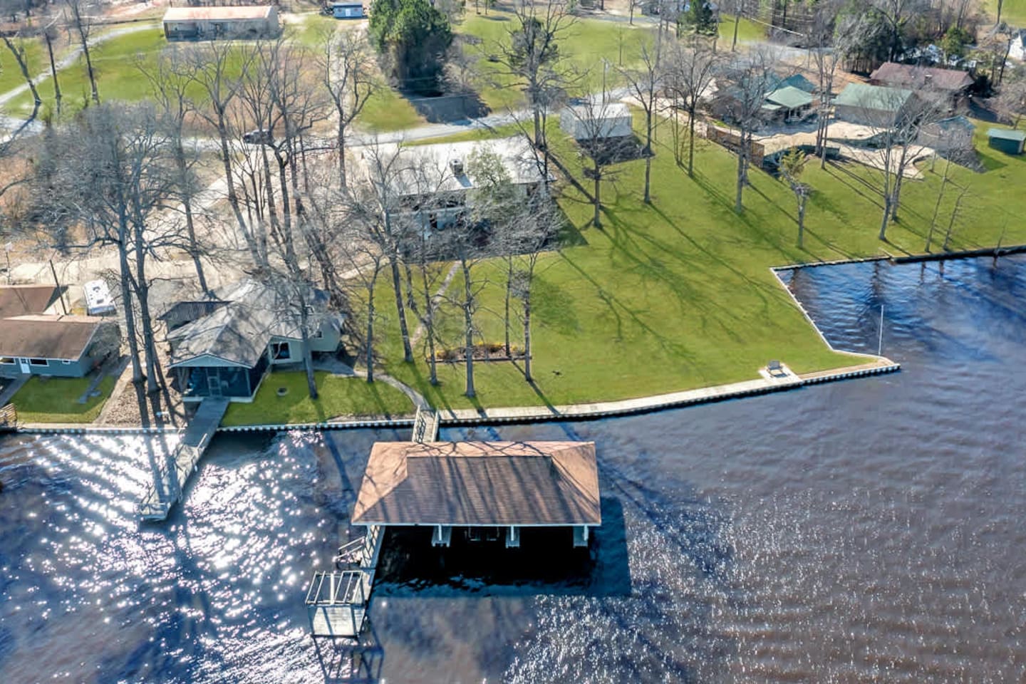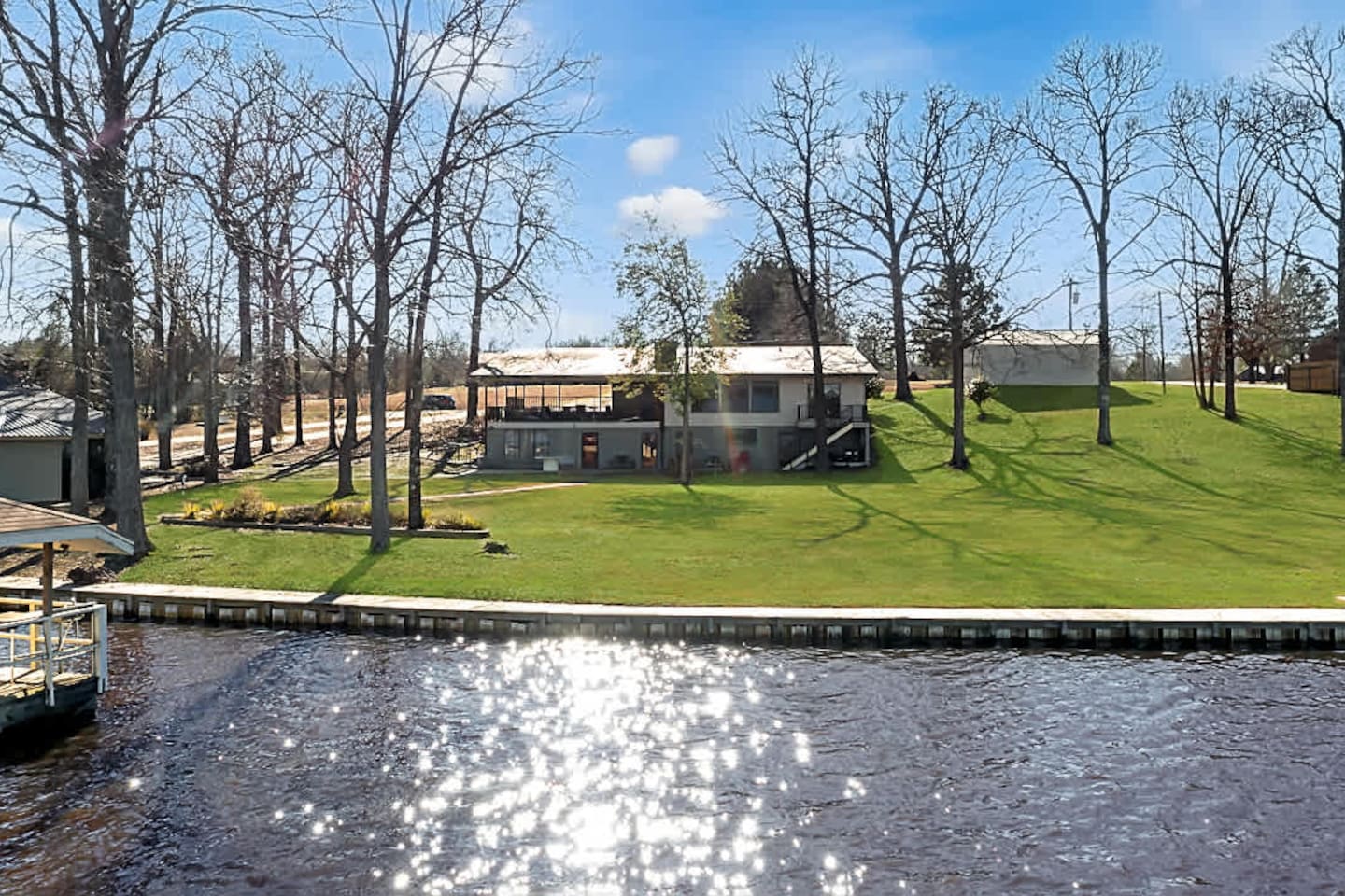 Escape to this newly refreshed lakefront retreat on Lake D’Arbonne, a spacious five-bedroom, five-bathroom getaway perfect for families and large groups. Guests rave about the home’s cleanliness, modern design, and ample space, with a huge yard that’s ideal for outdoor activities and a cozy fire pit for evening gatherings. The three-stall boathouse offers direct lake access for boating and fishing, while the covered patio and fully equipped kitchen make dining a breeze. Whether you’re enjoying f