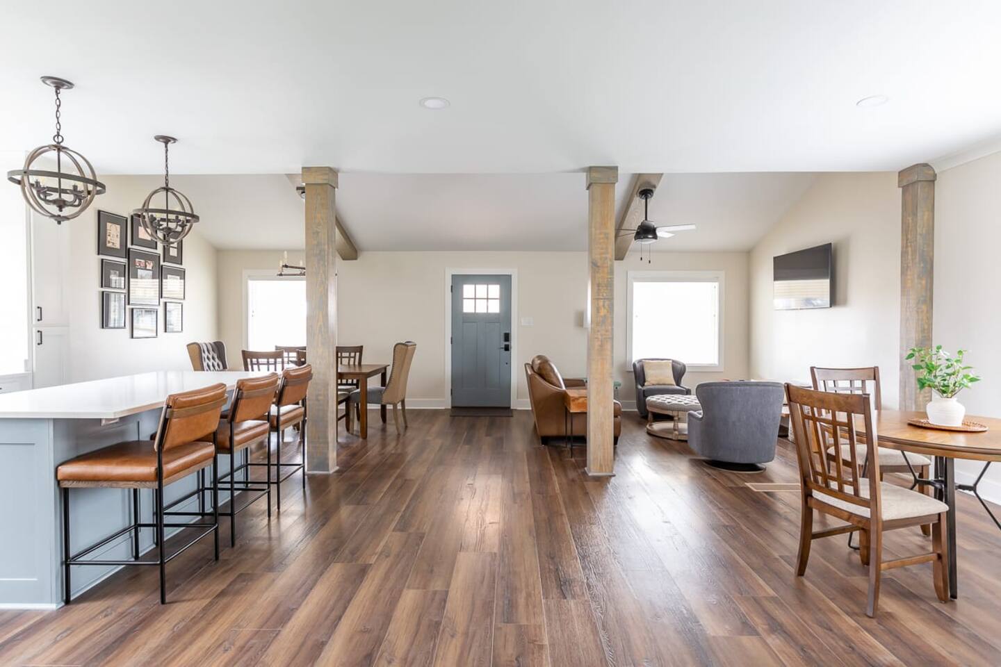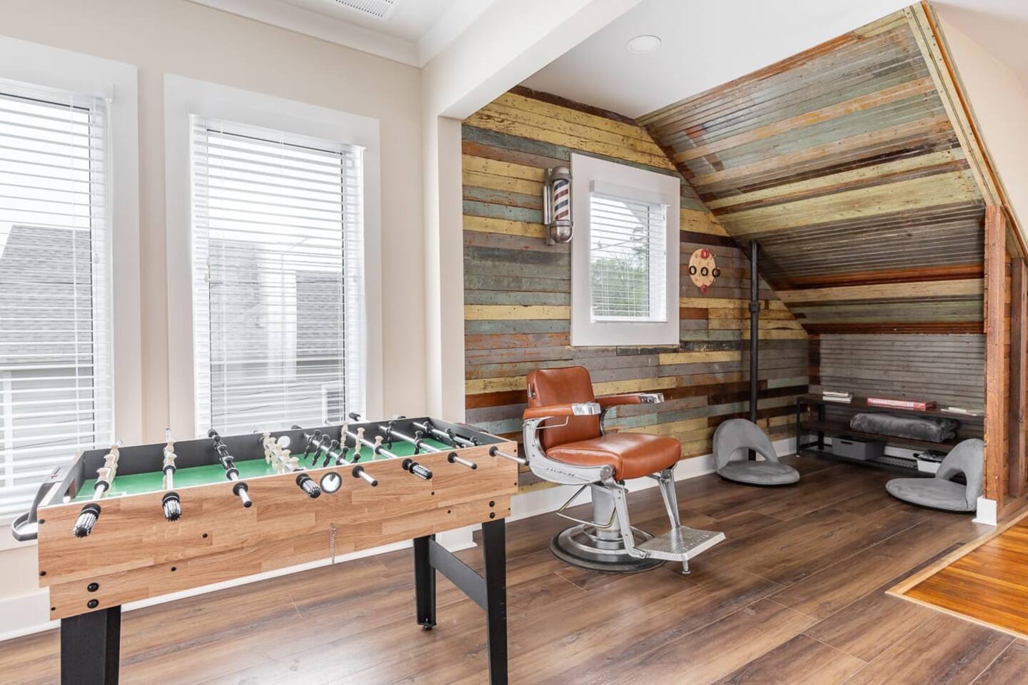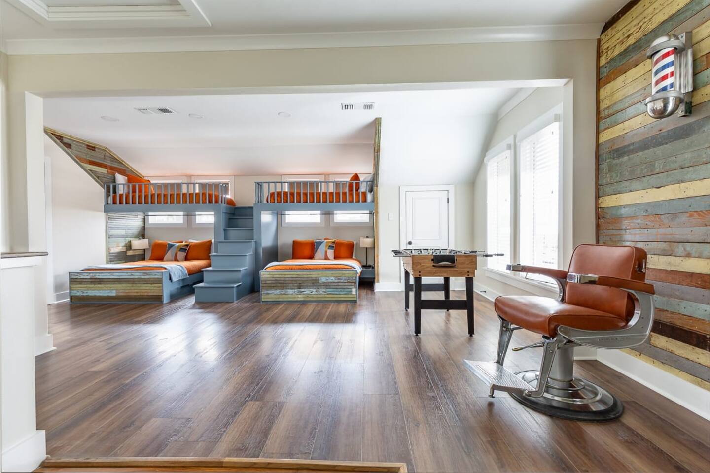The Ledford house was first built in the early 1900’s. No one seems to know who built it originally. In addition to being a kindergarten upstairs, rumor has it that a man by the name of Elvis Presley once stopped by to get his record played while it was an old radio station down stairs. The home’s beautiful original wood work you see scattered around the house today would be covered by numerous owners before it was purchased by Bobby Ledford in 1978. Bobby Ledford was a budding barber and proud US Navy veteran. He once offered 100’s of free hair cuts to men and women serving in our military. High and tight was his specialty. He along with his wife Laurice and sister in law Karen Williams made “The Barbershop” a place of love, laughter, and excellent story telling for over 40 years in this community. Bobby and Laurice’s daughters, Tonya and Linzie along with Karen and Kenneth’s children, Kyle and Kadie considered this a second home spending hours after school visiting with clients and doing homework . During the covid era, Bobby passed away and Karen experienced loss of eyesight closing the doors to all of its clients and devastating the community that loved them so deeply. It was during that time of despair that Linzie had a dream like a message from heaven . The Barbershop should not be sold but instead be renewed and continue in the family for generations to come! In the summer of 2022 “The Barbershop“ was purchased by Linzie and Jeremy Hebert. The idea would be to create an Airbnb for other families like their own to celebrate life and be together in a home away from home. On January 4, 2023 the entire family gathered to say good bye to the old, wrote scripture for the new walls, and prayed over what God had planned next. As the former walls came down in a true labor of love, incredible beauty was found beneath the surface. The brick arches, the easter egg colored shiplap wood, the old landing upstairs, and even the original door with its crystal knob beamed brightly like diamonds in the ruff just waiting to be rediscovered . While “The Barbershop” will always be what we call it, The Ledford House will serve as its new name and the beginning of a new era honoring the days past and rejoicing in the memories to come.